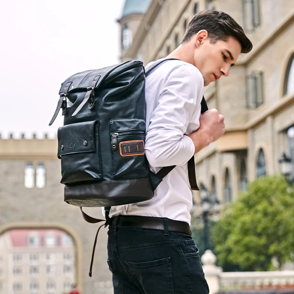Special Offer Vicuña POLO Simple Patchwork mochila de cuero de gran capacidad para hombre para viaje Casual mochila de viaje para hombre mochilas de viaje de cuero Discount 50% Today!