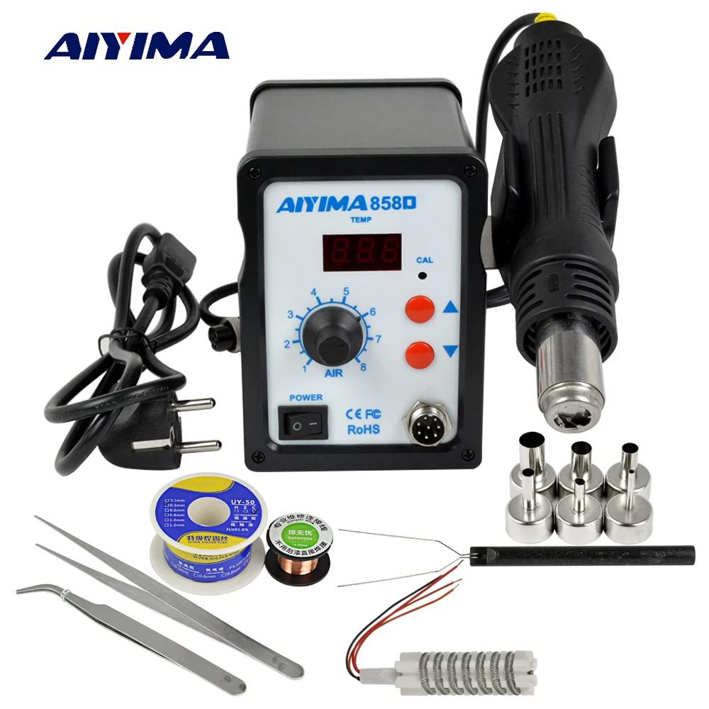 Special Offer Estación de soldadura AIYIMA 858D soldadura BGA Estación de retrabajo 110V 220V 700W Estación de soldadura de aire caliente estación digital LCD Discount 18% Today!