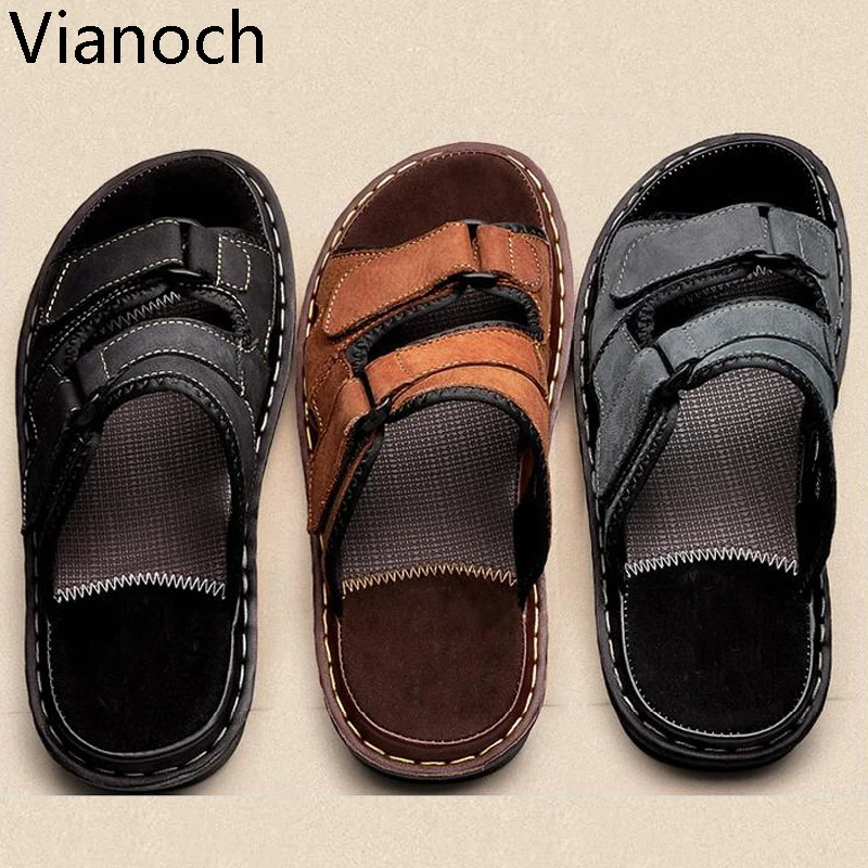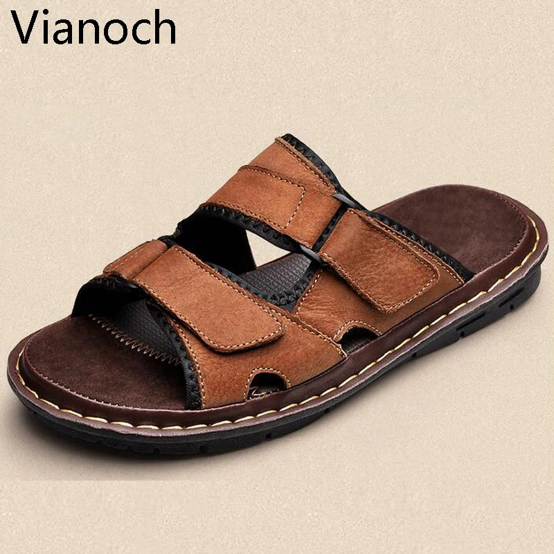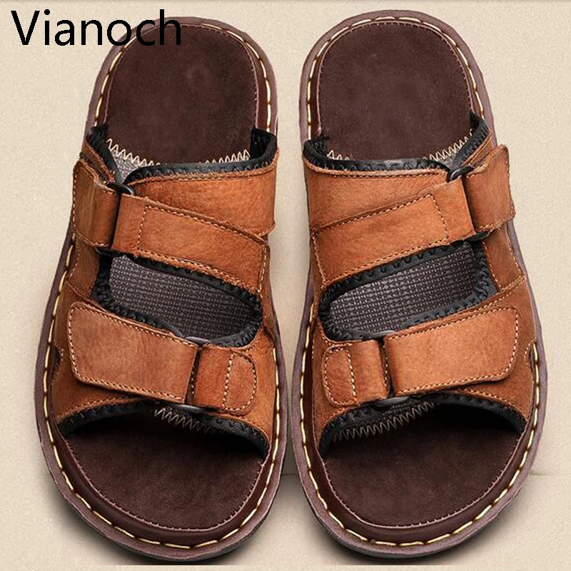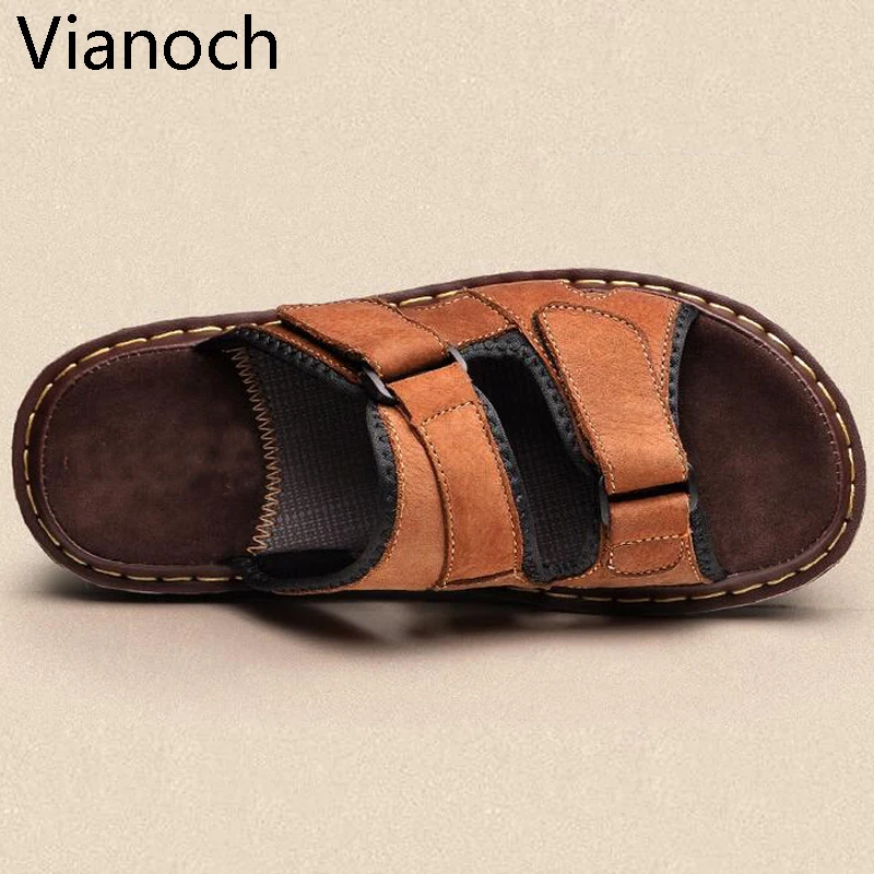 Special Offer 2019 nuevas sandalias para hombre deslizantes zapatillas planas verano playa zapatos de cuero de gran tamaño hombre grande tamaño 45 46 bb0242 Discount 20% Today!