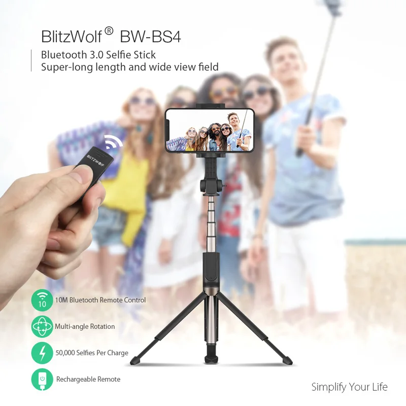 Special Offer En Stock BlitzWolf 3 en 1 Palo de Selfie Teléfono Trípode Extensible Monopie con Disparador Bluetooth para iPhone X para Samsung Teléfono Inteligente Discount 20% Today!