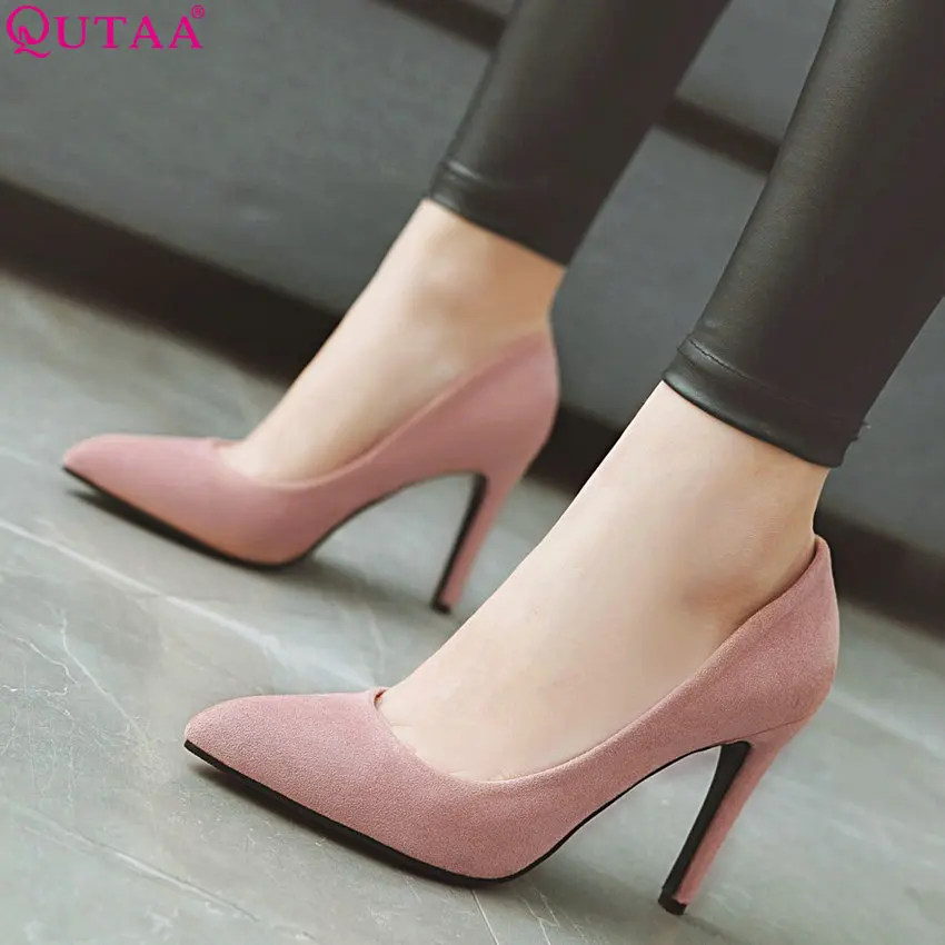 Special Offer QUTAA 2020 mujeres bombas zapatos de mujer de moda Primavera otoño todo encuentro delgada de tacón alto puntiagudo dedo del pie rebaño boda bombas tamaño 34 43 Discount 48% Today!