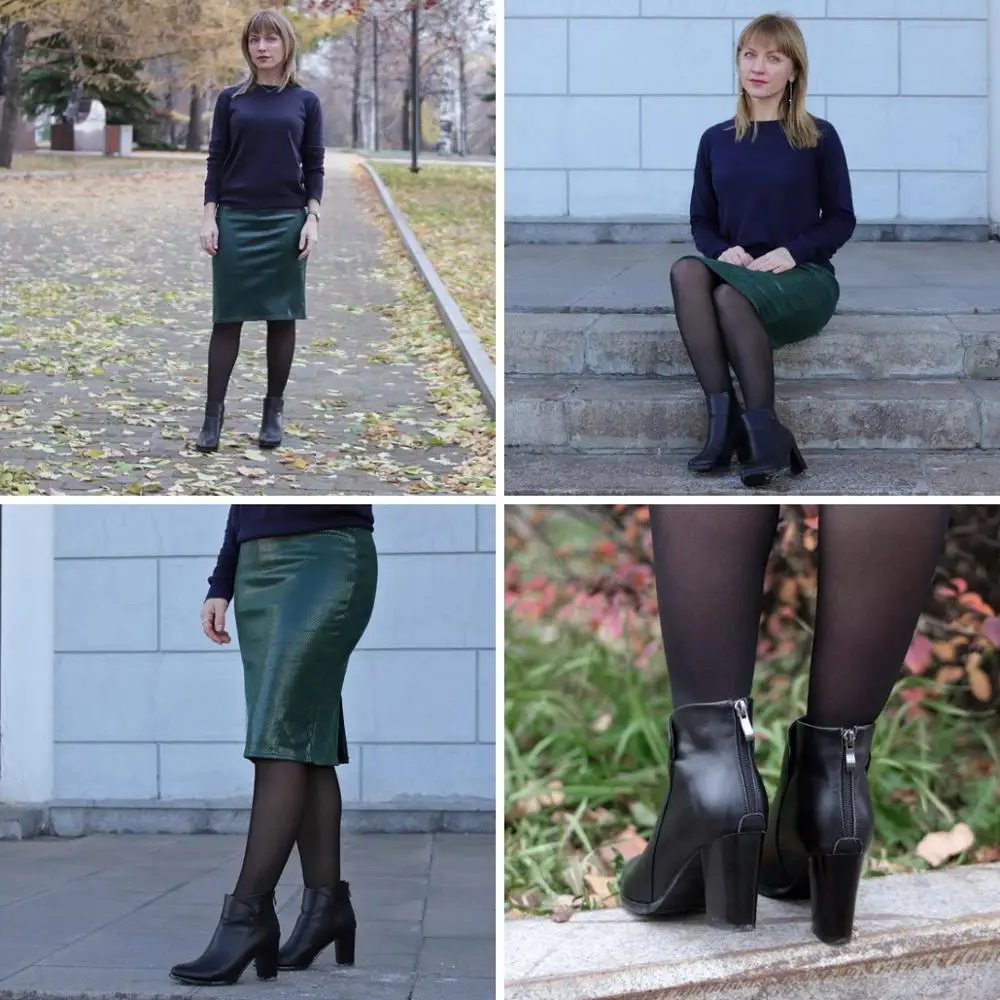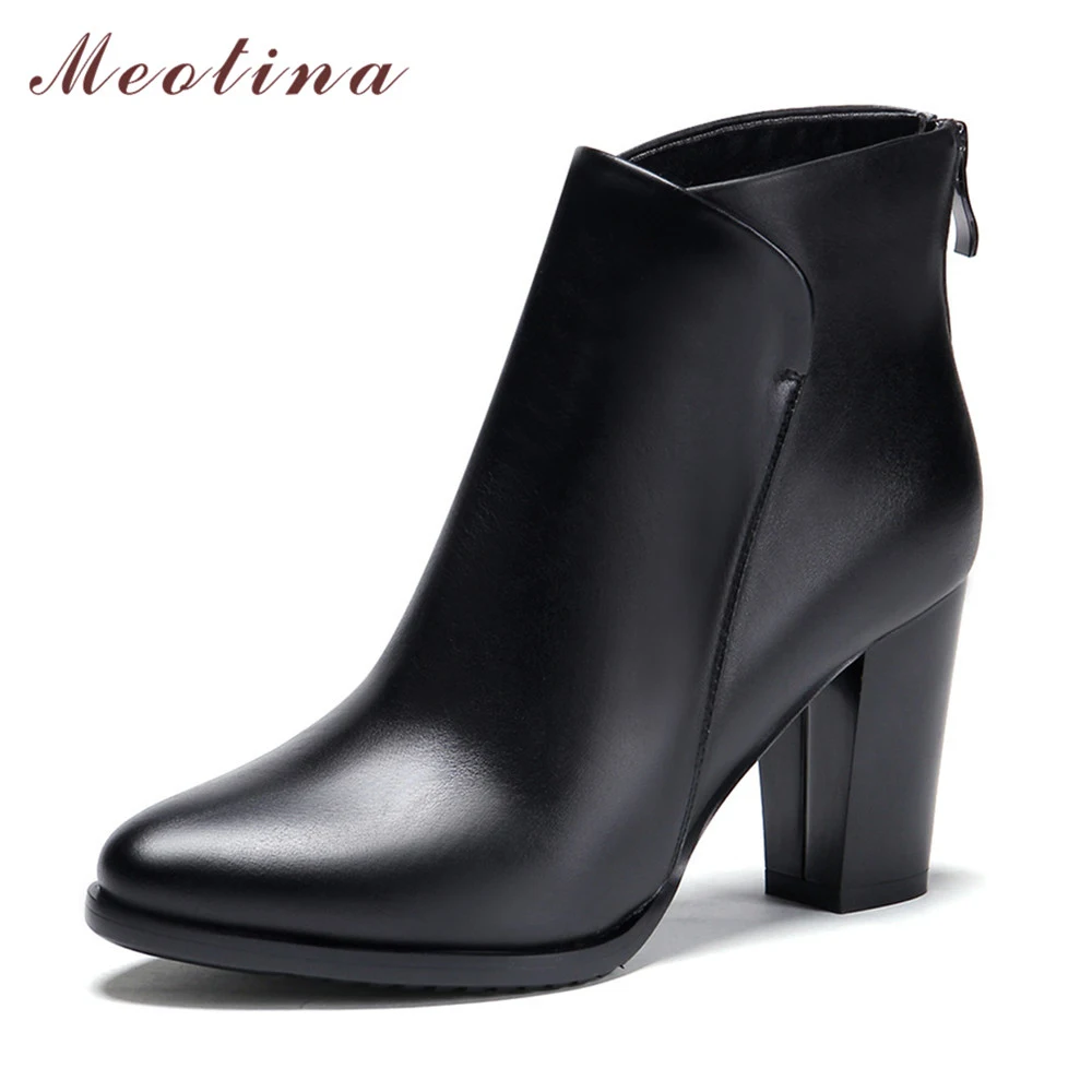 Special Offer Meotina zapatos de cuero genuino botas de tobillo de mujer otoño grueso de tacón alto botas femeninas Zip invierno zapatos de cuero hechos a mano bota negro Discount 52% Today!