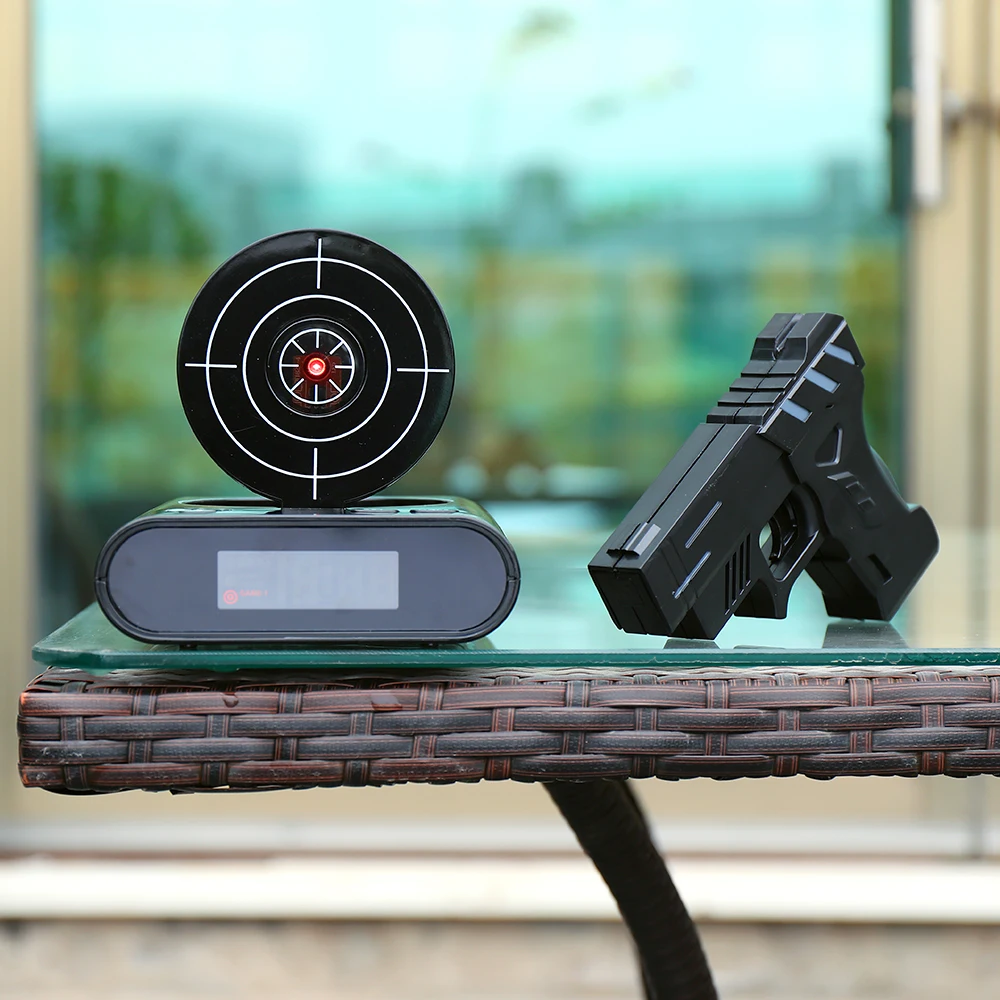 Special Offer GT Gadget objetivo pistola de disparo láser alarma reloj de mesa escritorio reloj Digital electrónico Nixie reloj de noche Discount 25% Today!