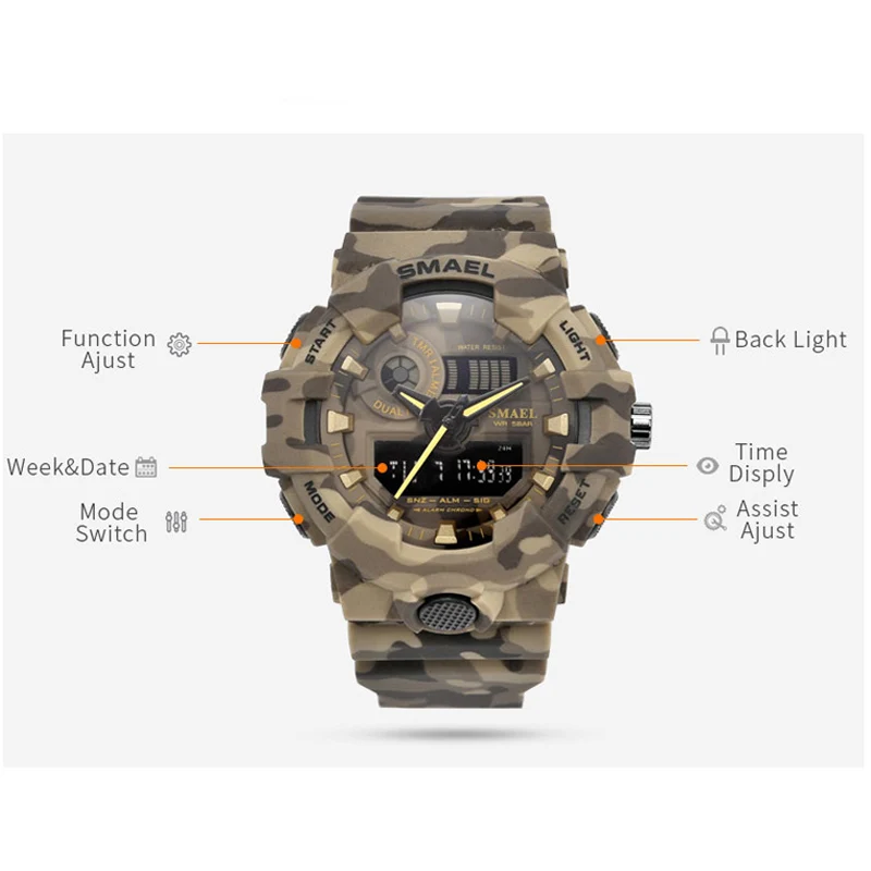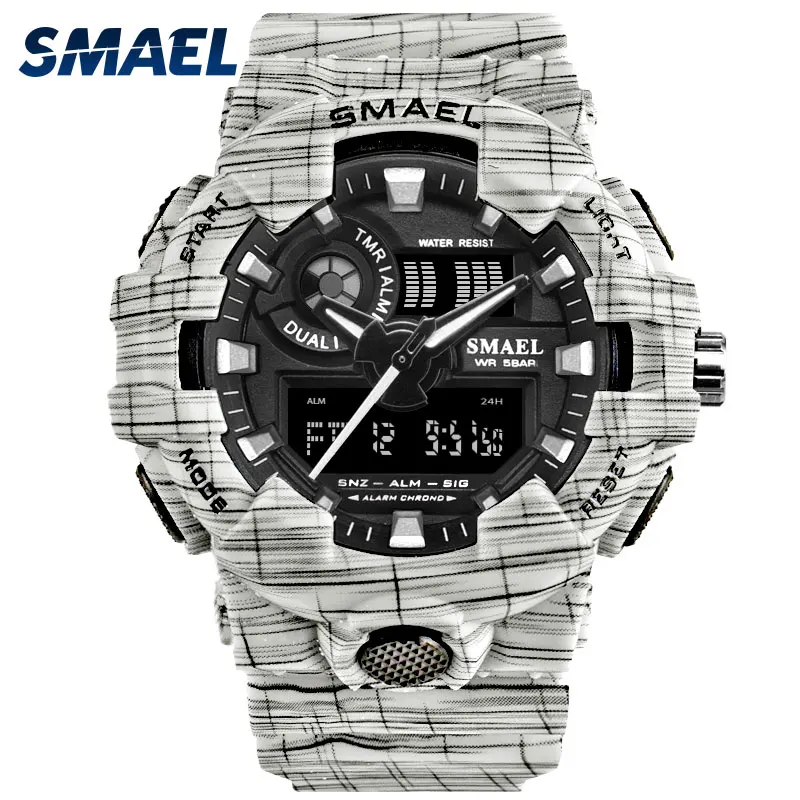 Special Offer Relojes deportivos SMAEL a prueba de agua, cronómetro, cronógrafo, relojes de pulsera 8001, reloj de pulsera blanco Digital, caja de regalo Discount 52% Today!