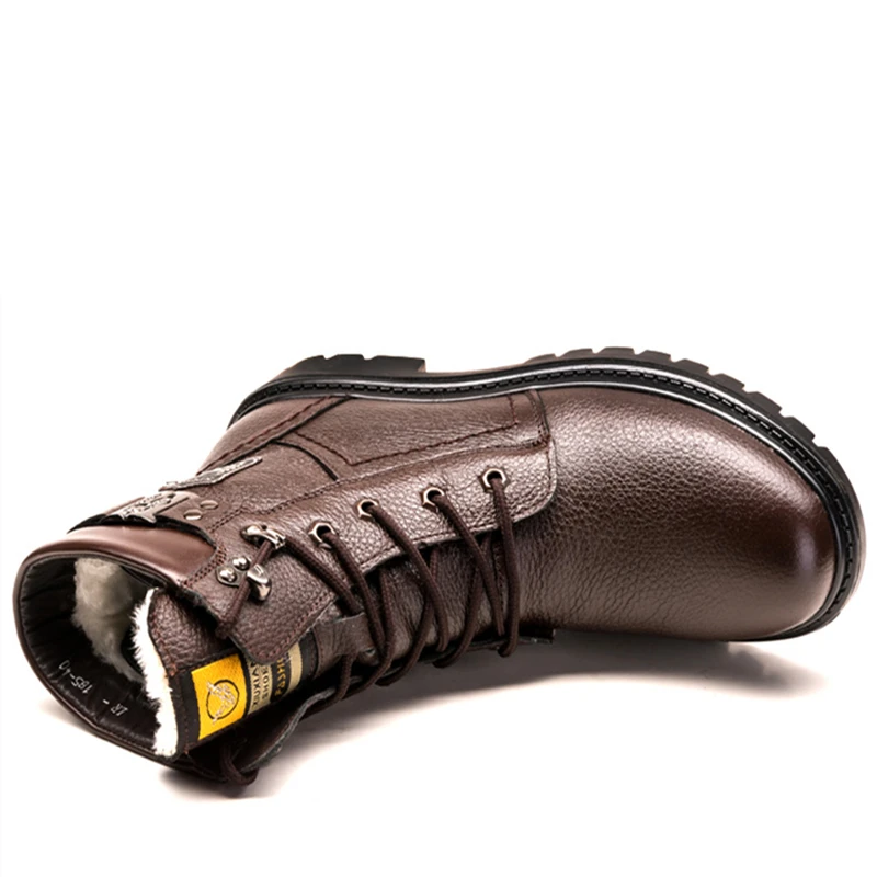 Special Offer Botas de nieve para hombre Misalwa 2019 botas de abrigo de lana de cuero genuino británico botas de seguridad de motocicleta de primavera con cordones elegantes Discount 48% Today!